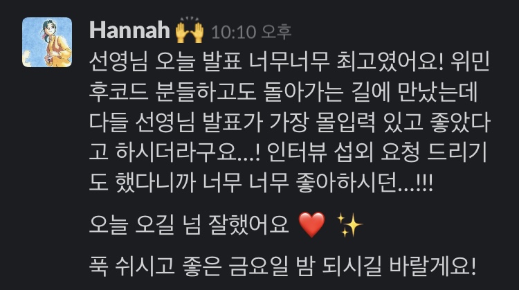 저의 발표 그럭저럭 괜찮았던 모양!