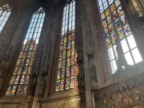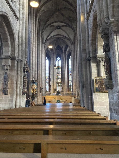 뉘른베르크에서 가볼 만한 종교적 건축물은 성 제발트 교회와 성 로렌츠 교회 두 군데. 시가지 자체가 별로 넓지 않기 때문에 성 로렌츠 교회 앞은 앞으로도 계~속 오게 된다. 시가지 통과하는 버스를 타도 Lorenzkirche 앞에서 내리고 지하철을 타도 Lorenzkirche 역에서 내린다. 물론 볼 때마다 반갑다. 무료입장 되고 얼마든지 머물러도 되는 건축물은 이 추위에 안 반가울 수가 없지⋯ 하루만 더 머물렀으면 아마 하나님 믿었을걸?