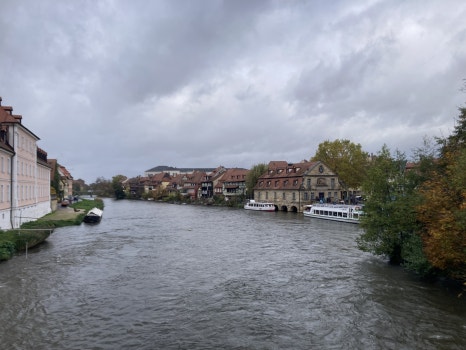정말로 강 위의 시청사였다! 다리 위의 시청이란 말을 소설에서 읽을 땐 그게 무슨 의미인지 상상이 잘 안 갔는데 정말로 강을 건너는 다리 위에 시청 건물이 있었다! 지금 사진으로 다시 봐도 신기하다. 밤베르크 주교가 시청 건설을 위한 토지를 시민들에게 내어주지 않아서 시민들이 직접 레그니츠 강에 말뚝을 박아 인공 섬을 만든 결과물이라고. 지금은 종교와 아무 관련 없는 평범한 랜드마크다. 저 멀리 페리가 몇 대 보이는데 페리를 타고 강을 유람하는 투어 상품도 있는 것 같았다. 날이 추워서인지 이용하는 사람은 볼 수 없었지만.