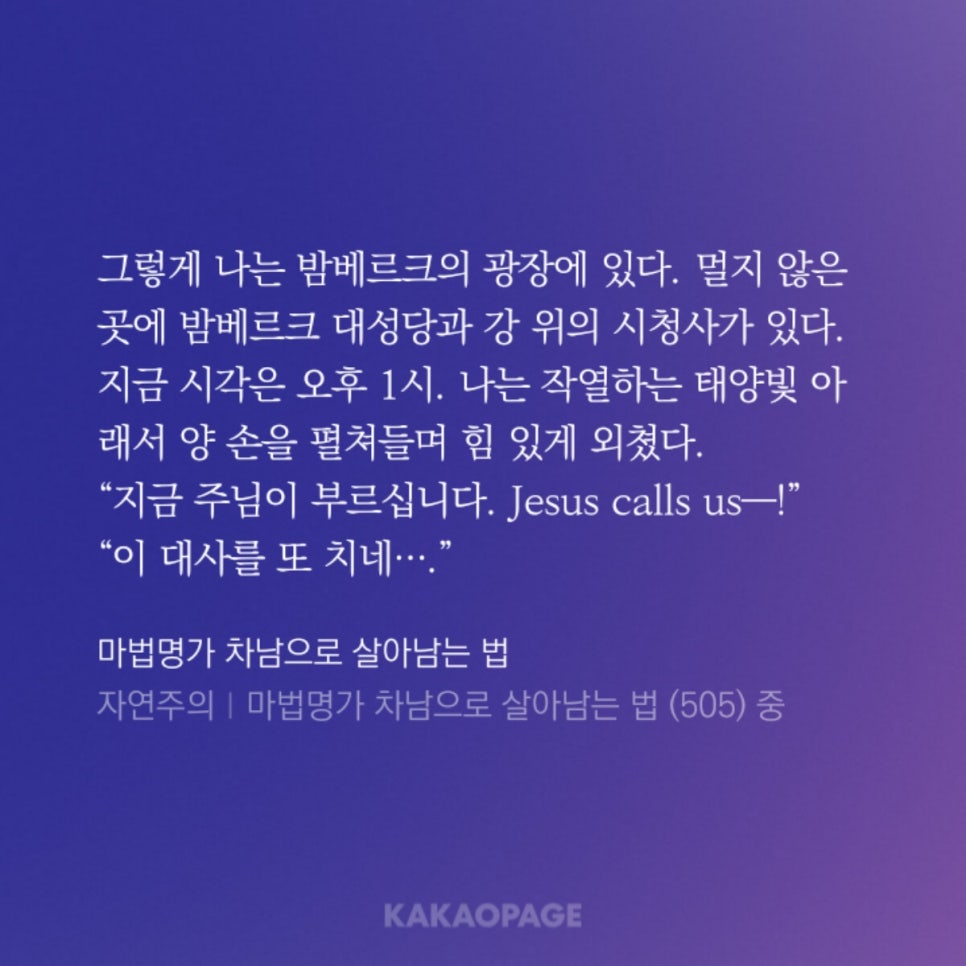 밤베르크에서 가장 크고 잘 알려진 광장은 Maximiliansplatz, 막시밀리안 광장이지만 내 생각에 정확하게 여길 염두에 두고 쓰였다면 작가님이 더 분명하게 언급했을 거 같았다. 그리고 무엇보다 독자로서의 나는 대-광장, 그러니까 왕의 이름이 붙은 크고 멋있는 광장이 아니라 좀 미니멀하고 사람 사는 느낌이 폴폴 나고 음쓰 냄새도 좀 나고 옆집에서 소시지 굽던 아저씨도 옳소 옳소 하고 튀어나올 수 있는 광장에서 사이비 전도 쇼가 이루어지는 쪽이 더 재밌게 느껴졌기 때문에 ‘혹시 여기였을까?’ 하는 즐거움으로 전혀 관광지가 아닌 작은 광장들을 열심히 돌아다녔다. 아무튼 나는 즐거웠지만, 그럼에도 지금까지 딱 하나 남는 아쉬움이 있다면 ‘오후 1시에 작열하는 태양빛’은 조금도 구경하지 못했다는 것이다. 그거까지 맞아떨어졌으면 정말 웃겼을 텐데⋯.