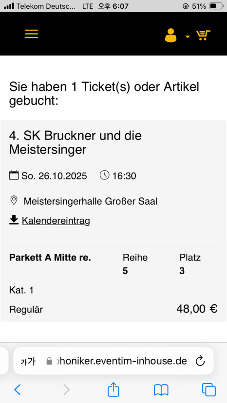 이 건물을 만났다. 어? 건물 멋있다. 뉘른베르크에 심포니 오케스트라가 있구나. 그렇지 나 사실 여행 루트 짤 때 오스트리아 가서 빈 필하모닉 공연을 봐도 좋을 거 같다 생각했었지. 뮌헨 필하모닉도 찾아봤었어. 근데 뉘른베르크는 생각을 못했네. 혹시 내일도 공연이 있나? 아직 자리가 있나? 엄청 비싸거나 하진 않나? 내가 알 만한 프로그램을 하나? 근데 이거라도 보러 가지 않으면 내일은 정말로 할 일이 없어. 아 모르겠다! 가자! 48유로? 좀 비싼데? 그치만 가자!