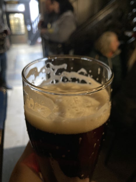 원래는 이 순서로 다닐 생각이 아니었는데, 밥은 다 먹었고 아직 오후 한 시는 멀었고 갈곳은 없고 이건 어쩔 수 없다 싶어서 북마크해 뒀던 맥주집에 갔다 ㅋㅋㅋㅋㅋ 밤베르크의 명물 라우흐비어, Rotbier, 영어로는 Red beer 또는 Smoke beer, 우리말로는 훈연 맥주다. 이곳은 테이크아웃 가격과 앉아서 마시는 가격이 다른데, 밖은 비가 쏟아지는데다 이곳 슐렌케를라 양조장은 원래도 라우흐비어로 유명한 곳이라 자리는 당연히 만석이었다. 따라서 나도 테이크아웃으로 시켰고 원칙적으로 테이크아웃 손님은 가게 안에서 마시면 안 되지만 이날은 약간 유도리 있게 봐주셨다. 나 말고도 가게 안에 어정쩡하게 서서 마시는 손님이 꽤 있었다. 아니 우산의 유무는 둘째치고 이 추위에 맥주 500ml 를 에스프레소처럼 원샷하고 갈 순 없잖아요⋯.